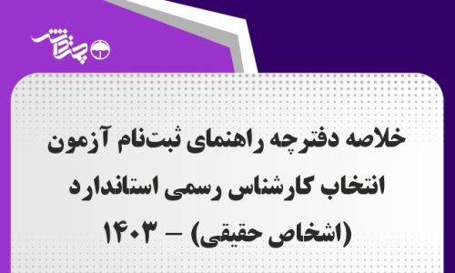 خلاصه دفترچه راهنمای ثبت‌نام آزمون انتخاب کارشناس رسمی استاندارد (اشخاص حقیقی) –۱۴۰۳