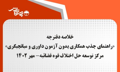 خلاصه دفترچه «راهنمای جذب همکاری بدون آزمون داوری و میانجی‌گری» مرکز توسعه حل اختلاف قوه قضاییه – مهر ۱۴۰۲
